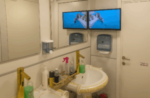 שירותים ניידים שאינם כימיים, אלא שירותים אמיתיים לכל דבר, נקיים, מצוחצחים ומבוססי מים זורמים, המותקנים בתוך משאית מיוחדת. הפתרון הזה נותן חוויית שירותים ברמת אולם אירועים גם בשטח פתוח.